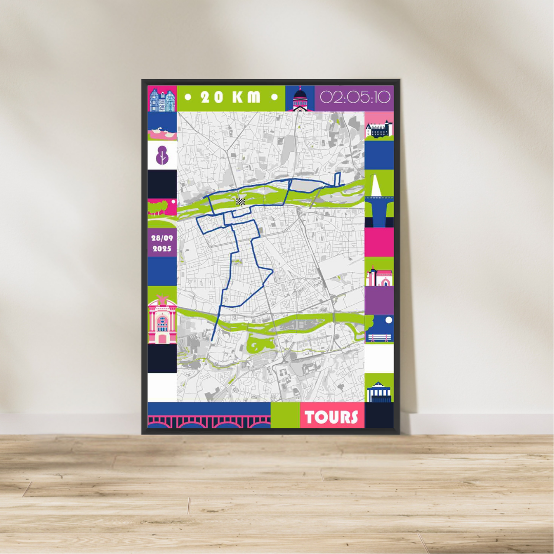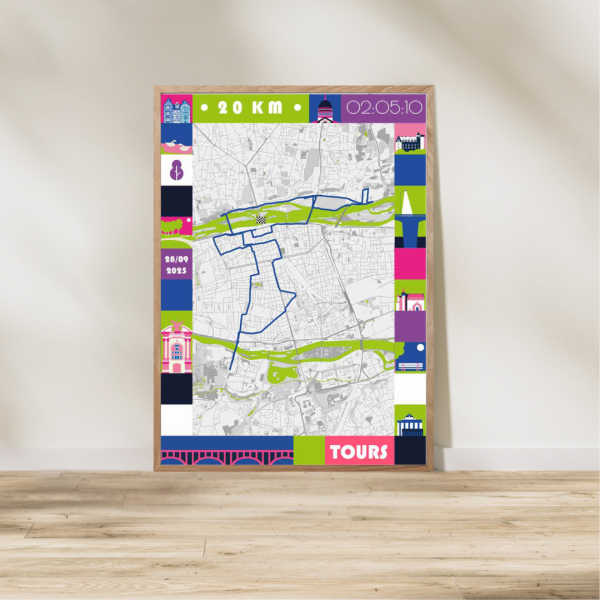 Découvrez notre affiche exclusive des 20km de Tours 2025. Personnalisez-la avec votre nom, prénom, numéro de dossard et votre temps de course pour créer un souvenir unique de votre participation à cet événement sportif emblématique.
