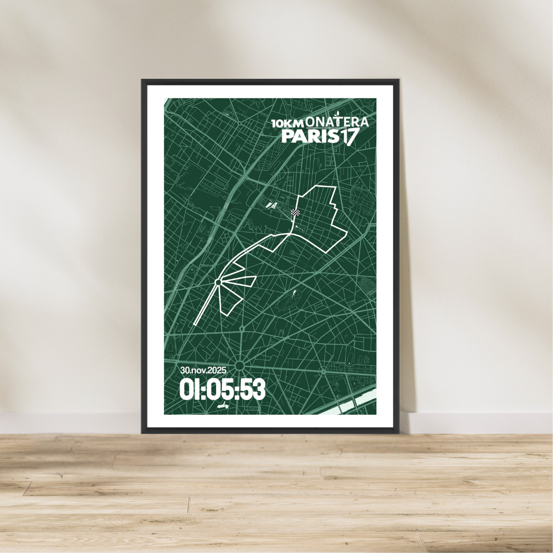 Découvrez notre affiche exclusive en partenariat des 10kms Onatera Paris17 à travers ls lieux emblématiques du 17ème arrondissement. Personnalisez-la avec votre nom, prénom, numéro de dossard et votre temps de course pour créer un souvenir unique de votre participation à cet événement sportif emblématique.