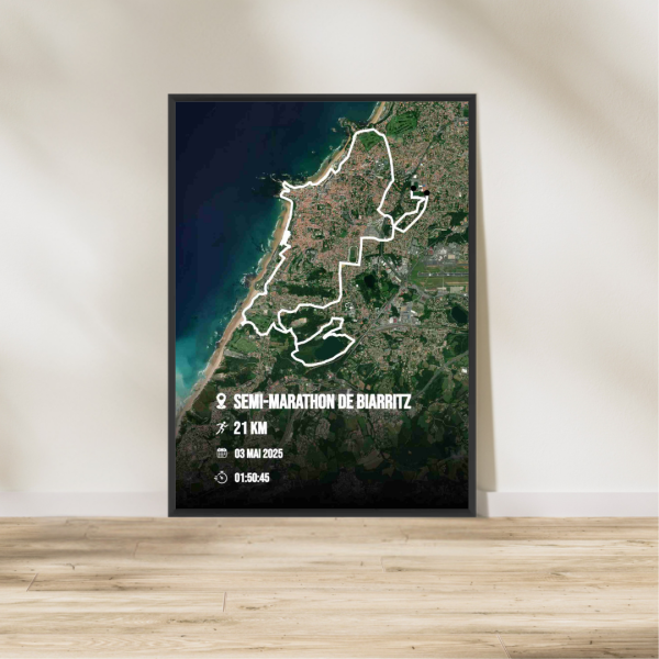 Découvrez notre affiche satellite exclusive du semi-marathon de Biarritz 2025. Personnalisez-la avec votre temps de course pour créer un souvenir unique de votre participation à cet événement sportif emblématique.